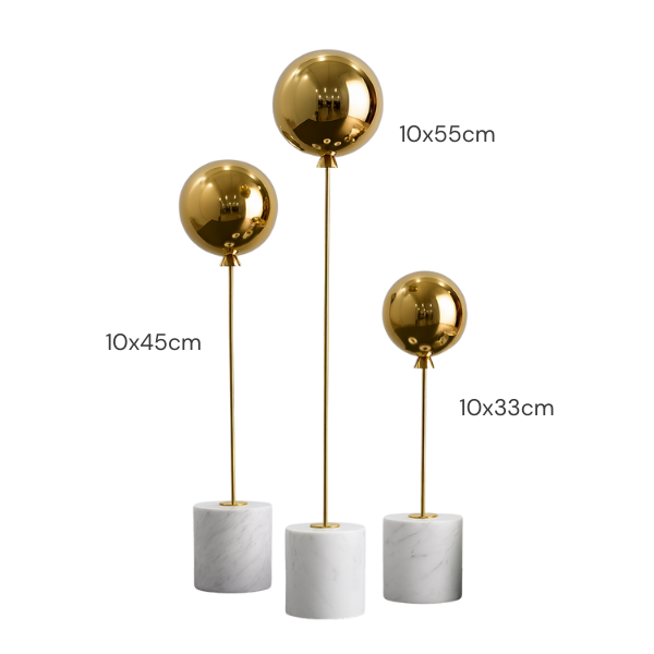 Material: Base em mármore natural + balão metálico dourado
